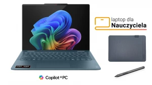 Laptop Lenovo Yoga Slim 7 14AKP10 o kodzie producenta 83JY002GPB jest produktem o przeznaczeniu: Dla nauczyciela. Wyposażono go w procesor AMD Ryzen™ AI 5 340, pamięć RAM o pojemności 16 GB oraz dysk 512 GB SSD. Błyszcząca, 14'' matryca WUXGA pozwala na wyświetlenie obrazu o maksymalnej rozdzielczości 1920 x 1200 pikseli. Zastosowane układy graficzne – Zintegrowany: AMD Radeon™ 840M, Dedykowany: Brak . Łączność bezprzewodową zapewnia karta pracująca w standardzie WiFi 7 (802.11 be). Turkusowy kolor pokrywy laptopa oraz Turkusowy kolor obudowy to dominujące barwy w jego designie, a waga notebooka to około 1,20 kg. Materiały wykorzystane do konstrukcji jego obudowy to: Aluminium. Produkt objęty jest gwarancją Carry-In/Door-To-Door (Naprawa w serwisie) Producenta, a okres obowiązywania to 24 miesiące. System operacyjny: Windows 11 Home.