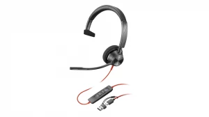 1. Słuchawki przewodowe HP Poly Blackwire 3310 Mono Microsoft Teams USB-C + Adapter USB-C/A -8X216AA