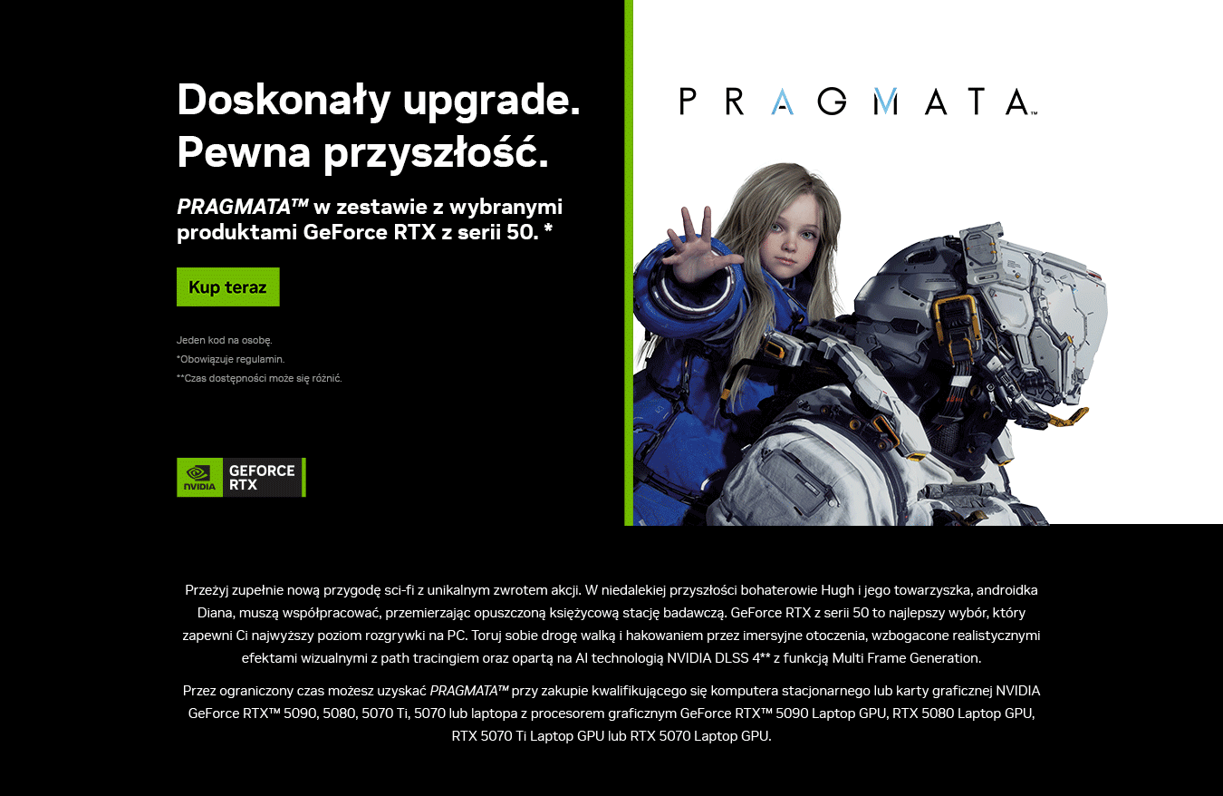 Ultimate Upgrade. Future promised. Pragmata w zestawie z GeForce RTX